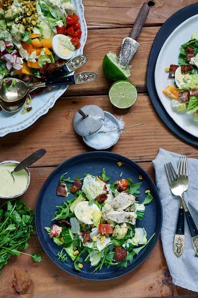 COLORFUL COBB SALAD WITH LIME CILANTRO WHOLE30 DRESSING