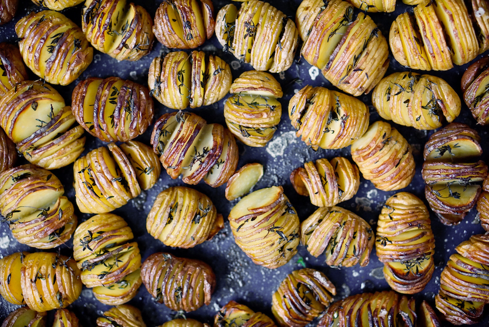 Mini hasselback – Hasselhoff potatoes with duck fat, thyme & homemade mustard sauce