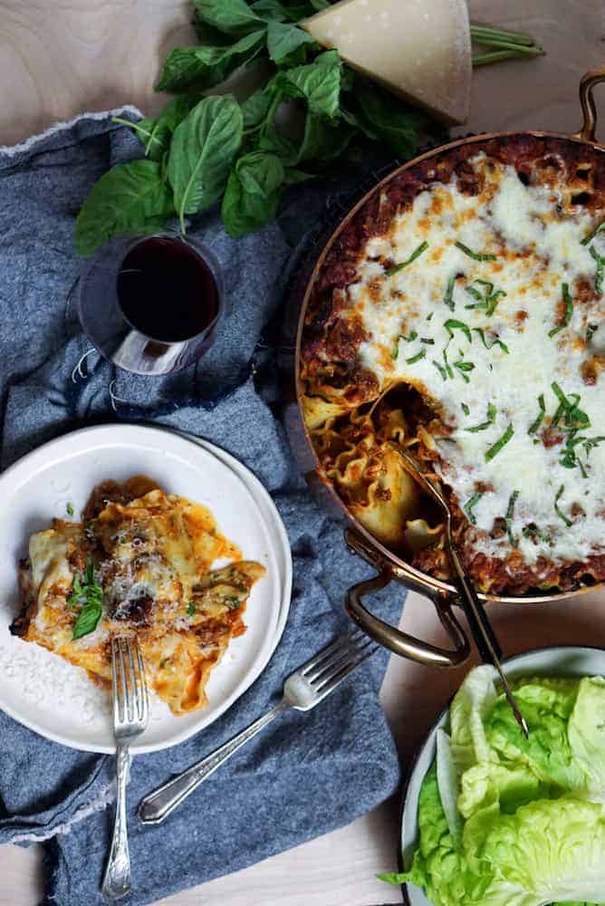 Who doesn’t love a good lasagna? The only thing not to love about it is how it presented in the dish, but this rolled version solves all of the problems. I figured this might be the perfect Valentines Day meal to make for your family or for a significant other. Plus it is so easy to make and makes for such a pretty presentation.