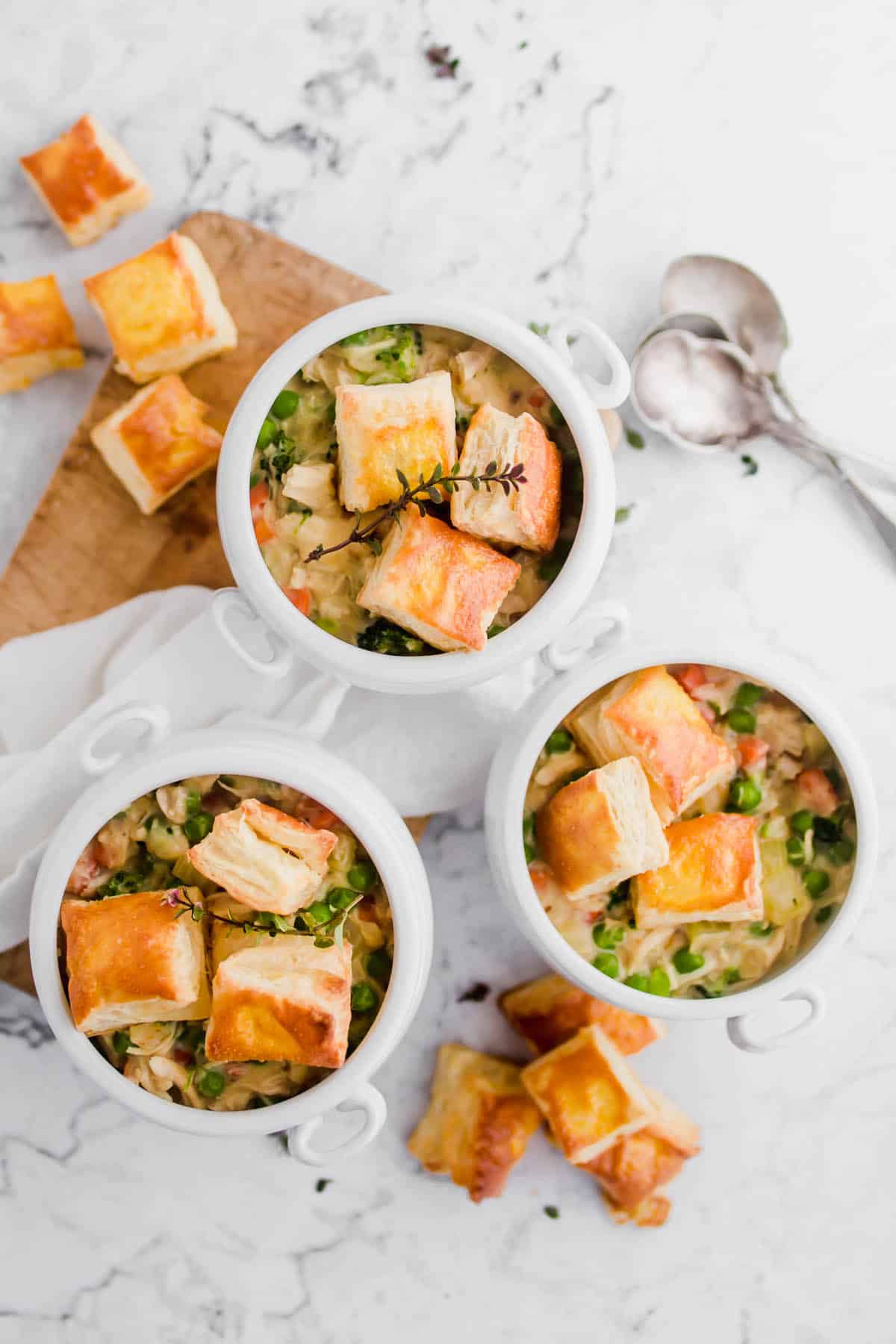 - Assemble and Serve: Spoon hot filling into bowls or ramekins. Top each serving with a piece of baked puff pastry. Serve immediately and enjoy the warm, flaky comfort.