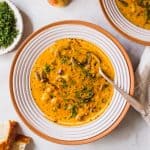 Add cornstarch and 2 tablespoons of the heavy cream in a small bowl, whisk to create a slurry. Add to the rest of the cream and then add to the pot of soup. Mix well to combine. Cook for an additional 5 minutes for the soup to thicken. Turn off the heat, remove bay leaves and thyme stems.