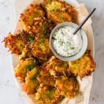 My 5-ingredient Crispy Classic Potato Latkes Recipe makes for a crunchy snack, breakfast, or side dish. Traditionally served at Hanukkah, these golden brown potato pancakes taste so savory and are perfect for dipping in the creamy sour cream and dill sauce.